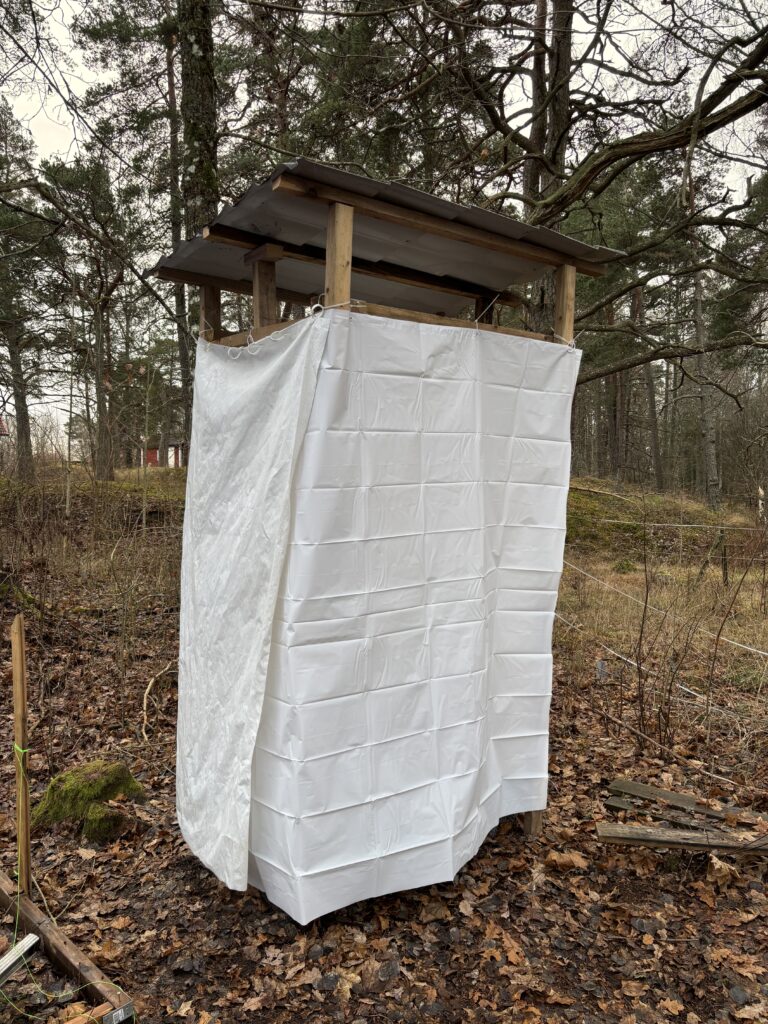 Ett enkelt utedass finns tillgängligt i anslutning till bastun